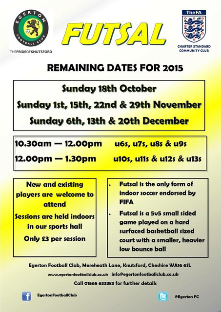 FUTSAL SESSIONS at Egerton TOMORROW!